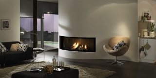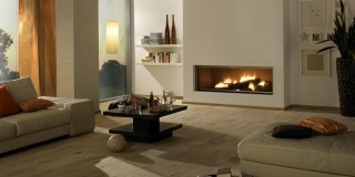 Kaminofenanlagen mit gerader Scheibe, ob waagerecht oder senkrecht angeordnet, sind bestens für optimalen Wärmespeicher geeignet. Ab 75 cm Breite und Tiefe können wir alles für Sie möglich machen.